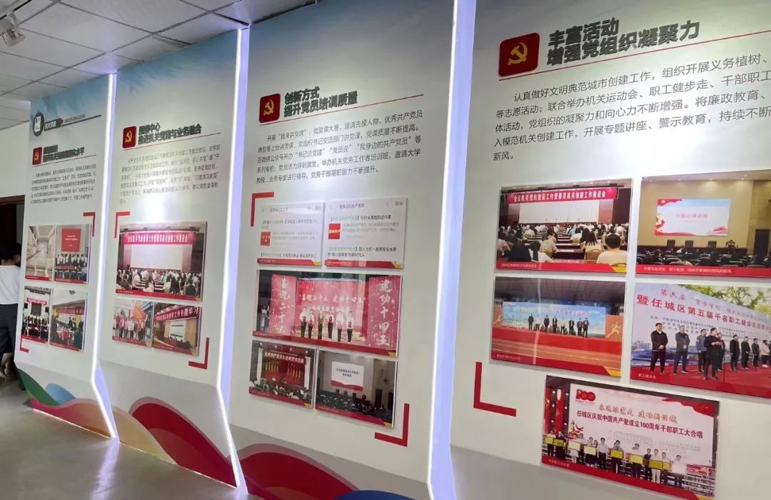 任城區(qū)黨史陳列館含走進(jìn)任城篇、古韻任城篇、紅色任城篇、富強(qiáng)任城篇、幸福任城篇、美麗任城篇及黨的十九大精神專題展覽等七大展廳。其中紅色任城篇和幸福任城篇以“站起來”“富起來”“強(qiáng)起來”“美起來”等多板塊介紹了中國(guó)共產(chǎn)黨領(lǐng)導(dǎo)人民在革命、建設(shè)和改革各個(gè)歷史時(shí)期所走過的光輝歷程,在社會(huì)主義現(xiàn)代化建設(shè)不同階段取得的一個(gè)又一個(gè)勝利。